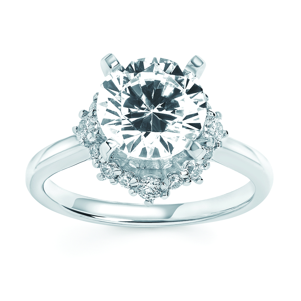 Engagement Ring Forever ElegantĀ® 3/8 Ctw. Diamond Semi Mount shown with 2.5 Ct. Round Center Diamond in 14K Gold