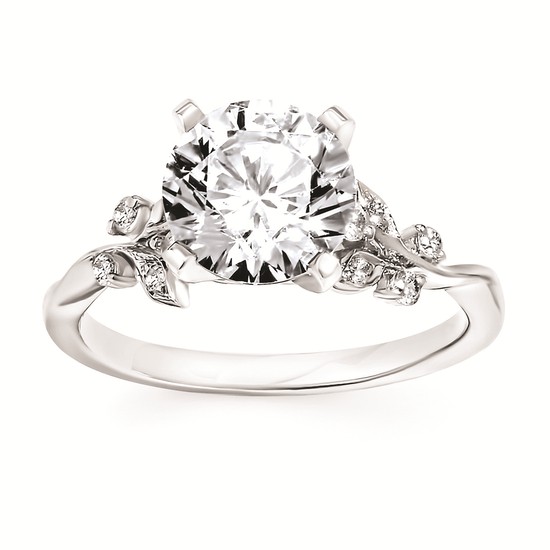 Engagement Ring Forever ElegantĀ® 1/8 Ctw. Diamond Semi Mount shown with 2 Ct. Round Center Diamond in 14K Gold