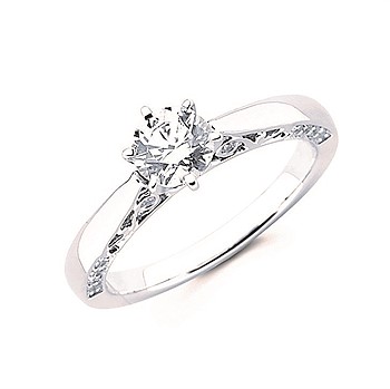 Vintage Bridal: 1/8 Ctw. Diamond Semi Mount With Patterned Band Shown With 3/4 Ct. Round Center Diamond In 14K Gold