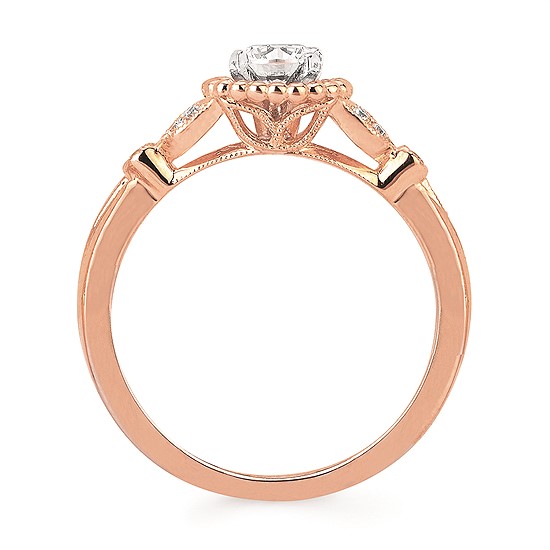 Engagement Ring Halo: .07 Ctw. Diamond Semi Mount shown with 1/3 Ct. Round Center Diamond in 14K Gold