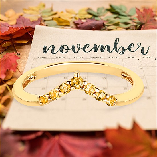 Citrine Stackable Chevron Birthstone Band In 14K Gold